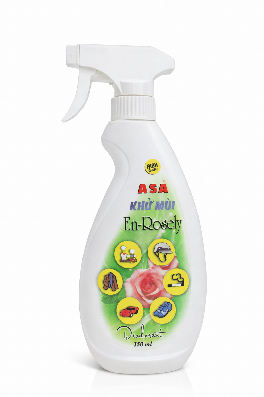 -Khử mùi ASA En-Rosely với hoạt chất ZnRi - Complex, chuyên khử các mùi khó chịu trong sinh hoạt gia đình, bếp, toilet, văn phòng, khách sạn, xe hơi,... như: mùi mồ hôi, thuốc lá, ẩm mốc, mùi thức ăn,...